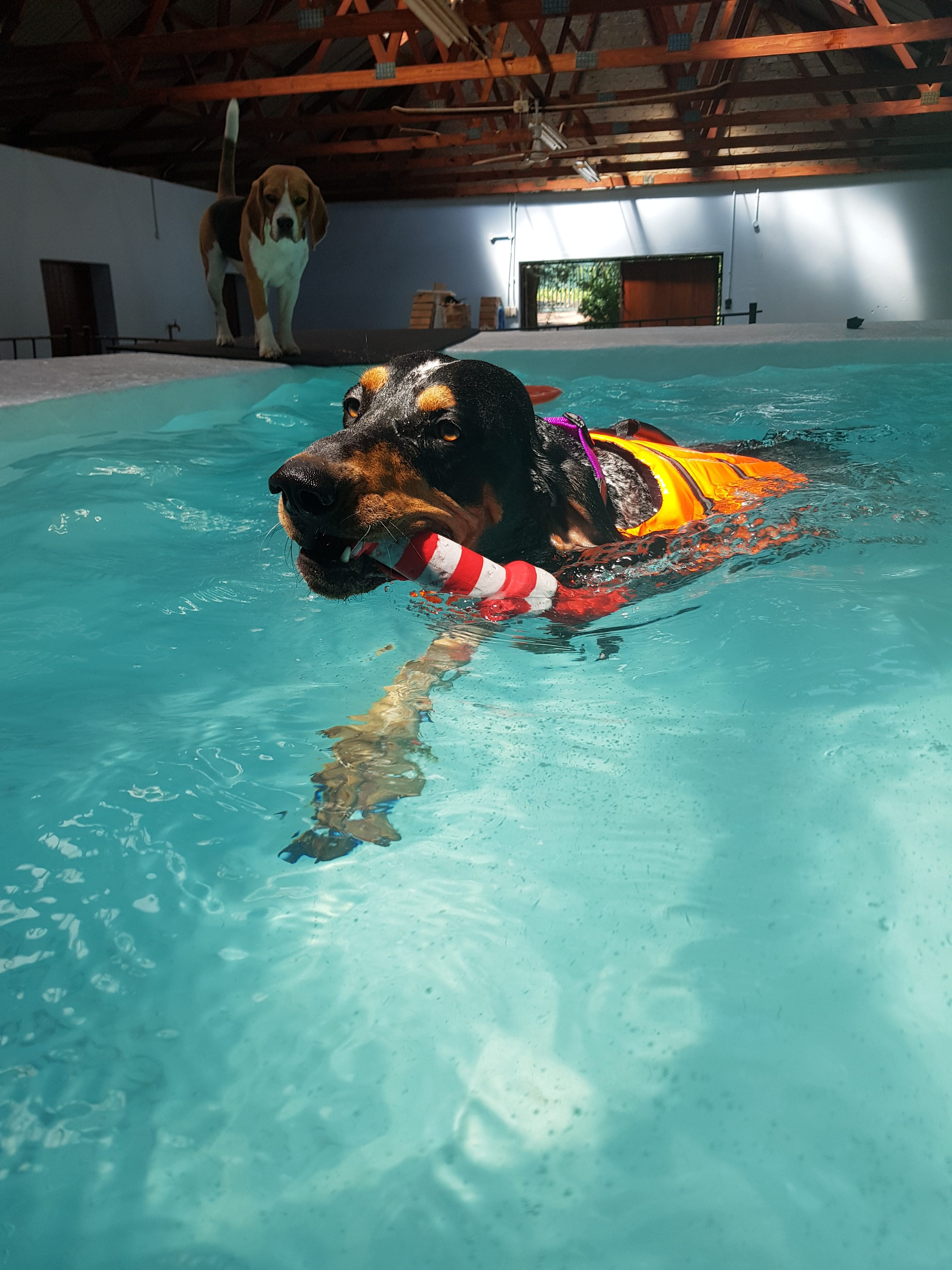 With an access ramp to the entrance of the pool and steps that double up as resting platforms in the water the pool offers easy access for, large and small as well as disabled pets. The heated water is kept at temperature of 28 to 30 deg C year round making it a comfortable swim for all animals including those with specific conditions and injuries.
